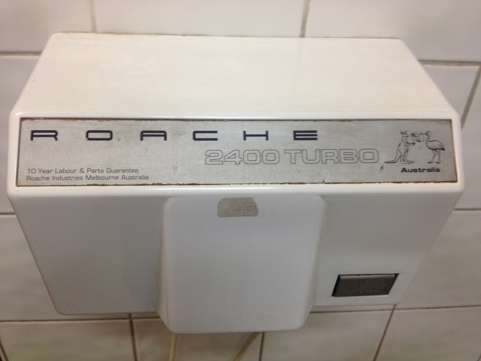 Who knew a hand dryer could be endearing? This one, with it's interesting title of "Rorsche" 2400 Turbo (I can only assume I'm supposed to conjure up images of a Porsche), decided its logo should be a kangaroo and an Emu...because when I think turbo...I think kangaroos and Emus.